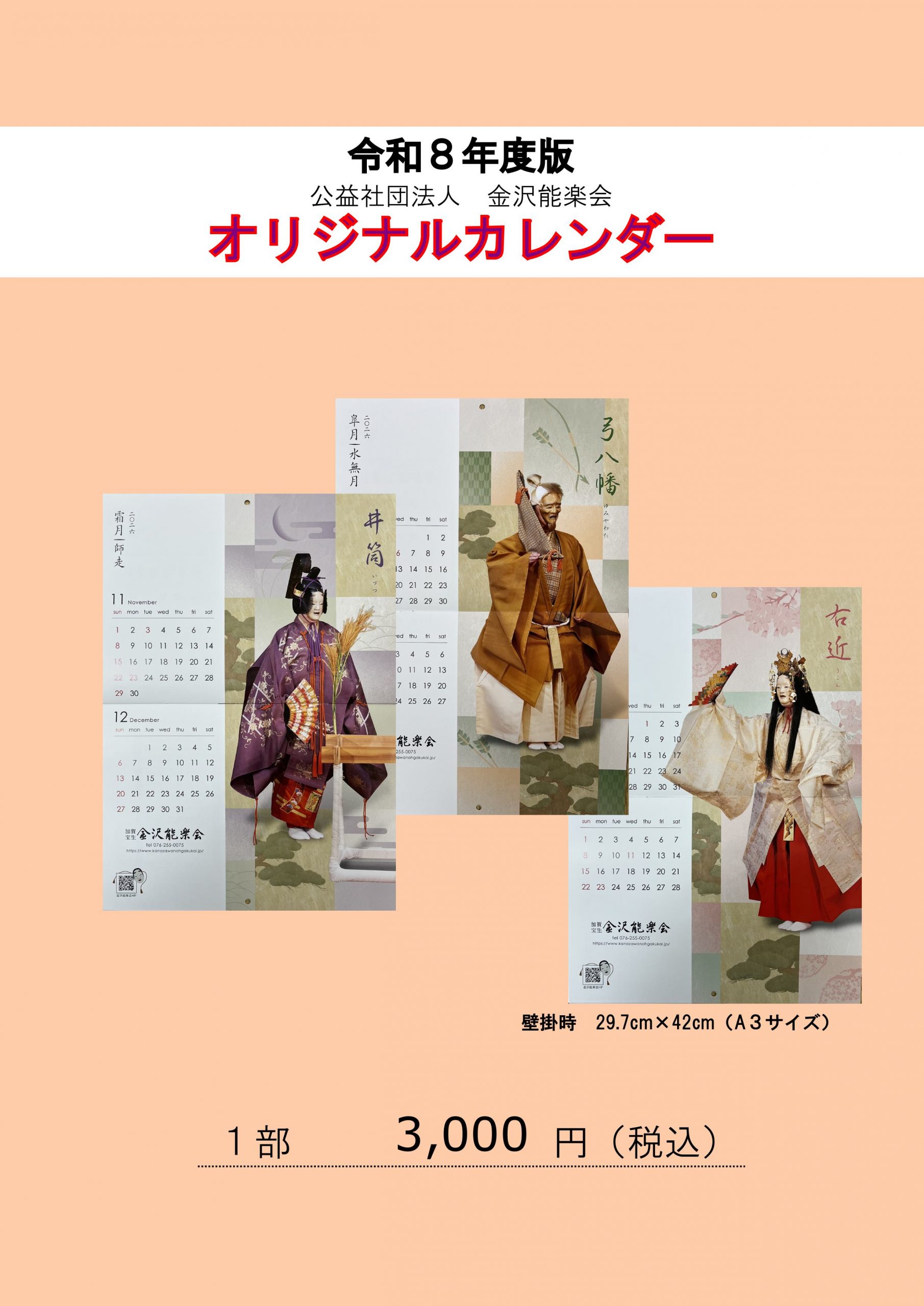 令和8年版 金沢能楽会カレンダー販売中 2025.11.23 ○金沢能楽会事務所、並びに定例能・慈善能での受付にて販売いたします。 ○金沢能楽会物販サイトより購入できます。(1部3,000円 + 送料500円 ) ※発送まで少々お時間をいただくこともあります。 金沢能楽会物販サイト Post 令和8年 定例能チケット販売開始