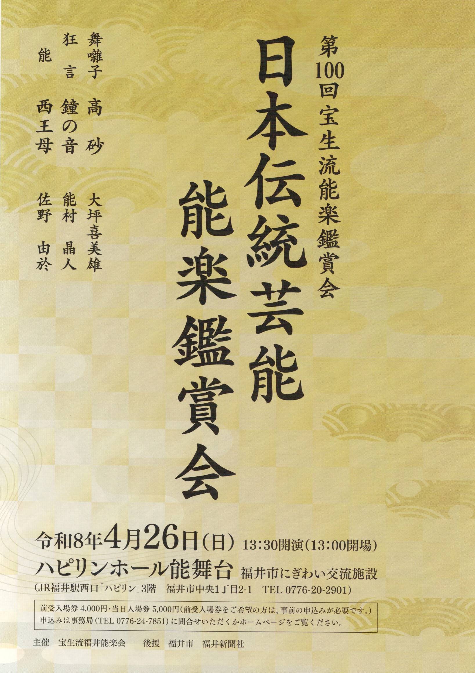 日本伝統芸能能楽鑑賞会(第100回宝生流能楽鑑賞会)